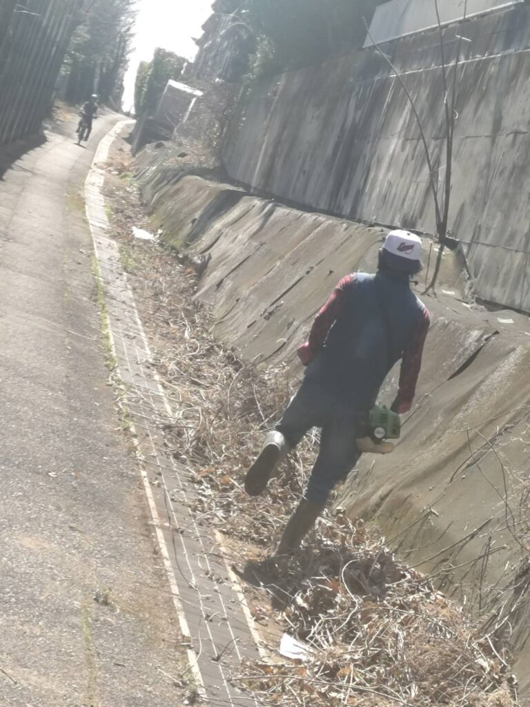 3月1日(日) 自治会役員有志で原田1号公園およびその横の国道歩道の仮払いを行いました。